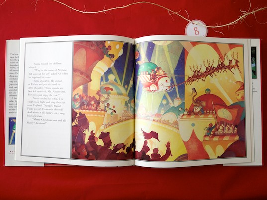 The art of this book is stupendous, just like the plot. William Joyce is a wonder as an author and an illustrator; and with fifty+ books under his belt, he knows what he is doing. The detail of his work is lovely and the man sure knows how to choose a color palette. I’m always in awe of his work and love to find a new one. If you shy away from Santa books, give this one a chance. The big man takes the back seat as the children experience a Christmas like no other.