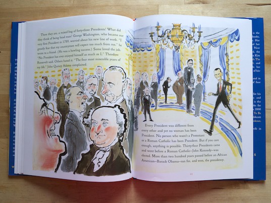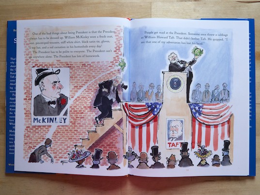 If you were like me, you always hated the task of trying to remember how many Presidents there were and ALL their names. Well, thanks to this book, that information has a better chance of being recollected. How could I ever forget who the smallest President was and especially the largest now that I’ve seen an illustration of his enormous, custom-order bathtub! And what kid wouldn’t want to know information about what kind of animals have lived at the White House over the years?