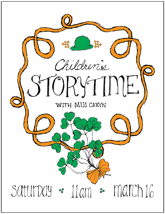 Well, due to some unfortunate photo issues, the book review I planned for today is going to be delayed. In the meantime, I’ll be early and post the storytime poster for this weekend. Come on out locals and let’s have a magically good time for St. Patrick’s Day! See you at Union Ave Books at 11 am!