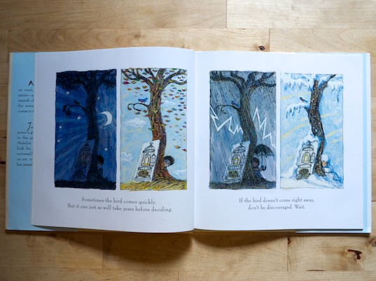 A French poem translated and illustrated in a way that ponders creativity, art, waiting, and wonder. It is a book that requests and deserves many reads and I feel the reader always leaves with a new discovery. Allow me to show you How to Paint the Portrait of a Bird by Jacques Prévert, illustrated and translated by Mordicai Gerstein, 2007.