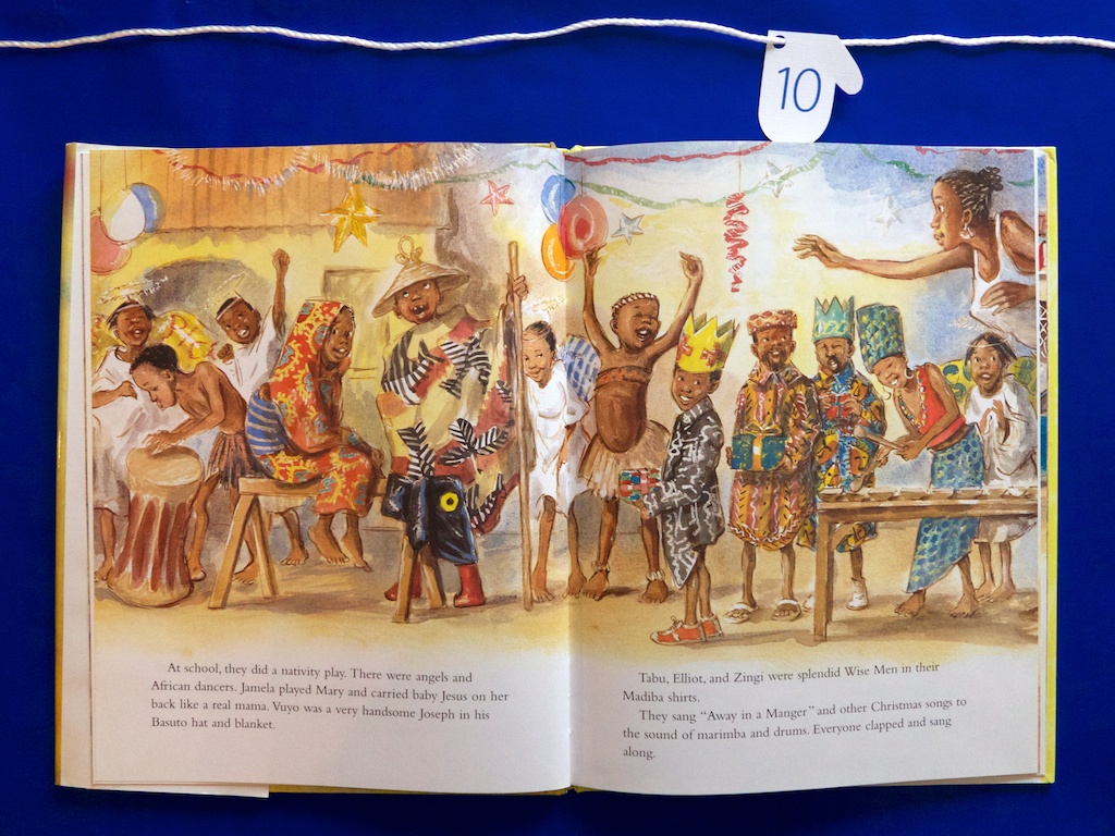 This is the kind of book that I greatly love: one that introduces me to culture very different from my own, is an entertaining story with great illustrations, and also surprises me with a heart-warming tale with a bit of silliness. It is odd to read of a warm-weather Christmas, as my own are nearly always very cold and often snowy. A good portion of picture books present cold Yuletides as well, so Jamela’s tale is a welcome change to my literary fare.