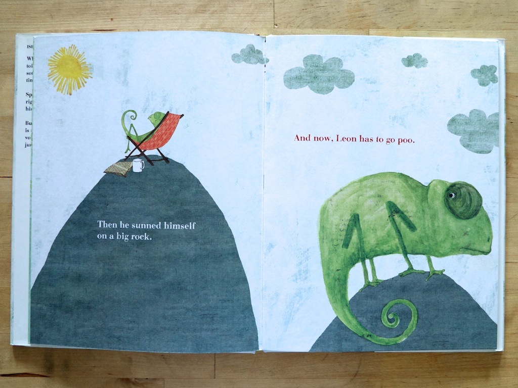 This is the story about a chameleon named Leon who is minding his own business and living his own little life – eating, sleeping, and pooping, of course.