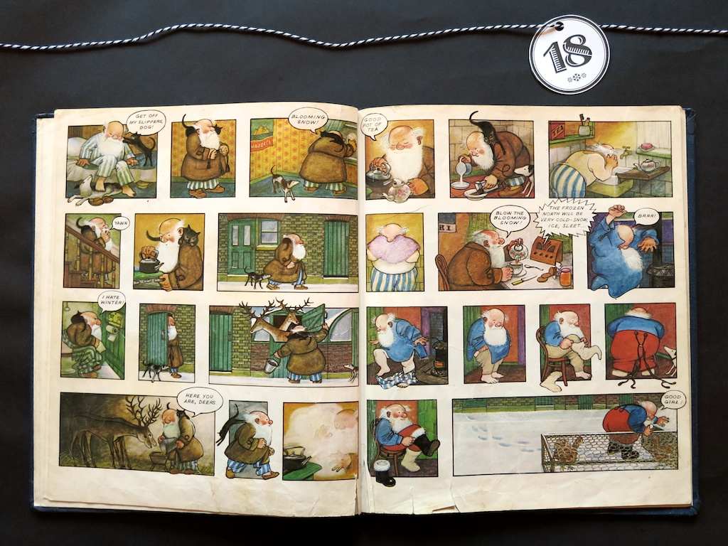 I love all the details Briggs’ plays up in the story. Two reindeer, because of course he lives in a city with little storage. His home is quaint and small with animal companions. I actually find myself missing my Grandpa when I read this, simply because he is living it up like an old man. When you’ve lived long and worked hard, you are entitled to a little grumbling and selfishness I guess.