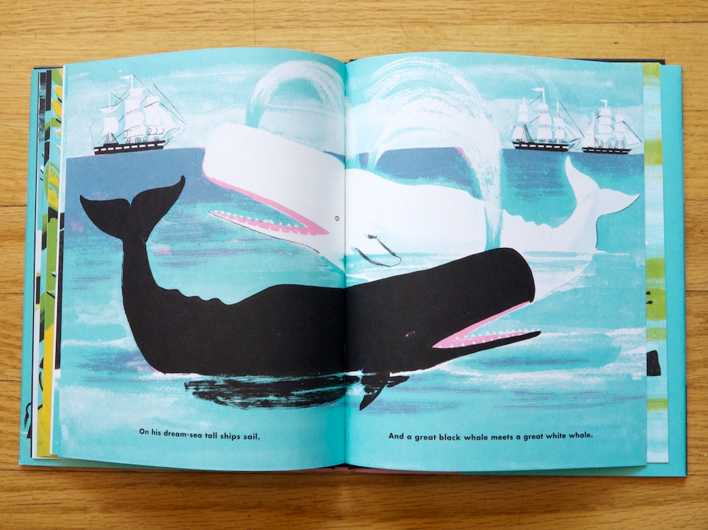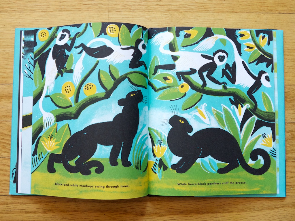 Words so simple and yet so lyrical, those are the words on the opening spread of Dahlov Ipcar’s stunning book about two dogs, two friends, two colors, and the adventures and imaginings surrounding them. Originally published at the height of the US civil rights movement in 1963, Flying Eye Books has remastered the original art and traditionally printed the book (on uncoated paper!) using the same bold spot color that made Ipcar known as a true master of color and organic form.