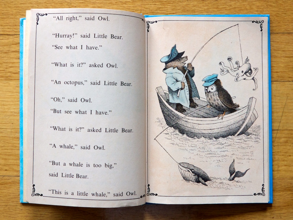 I find it notably significant that the first story in this book does not actually have Father Bear in it. The whole story is about Little Bear attempting to provide a fish for Mother Bear in Father Bear’s absence, all while pretending that he is actually Father Bear. While Father Bear is not physically present in the story, the stage is set emotionally with Little Bear missing and emulating Father Bear. We get a picture of not only what Father Bear does for the family, but also that he is loved, longed for, and a hero to his child. Through failures and successes, every kid loves and adores their dad. This is no doubt equally delightful and sobering.