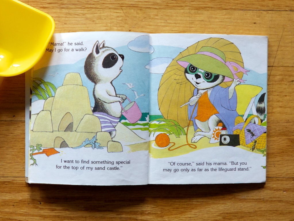 First up is this old, Little Golden Book. It is one of few books that my husband loved and saved from childhood and it has continued to receive love around here too. It is short, and yet extremely charming. Barney is totally believable as a kid and his simple imagination in creating a sand castle and using found objects to decorate it is captivating for kids. It is a great spark for creativity, but also an introduction to beach activity for newbie beach-goers.