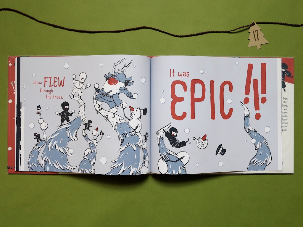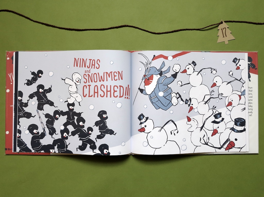 Today for the Christmas countdown I bring a picture book that is unlike any Christmas picture book I have ever seen. It is new. It is bold. It is about ninjas. It has a snowball fight. And it is epic. Another thrilling new book for the year, here is Samurai Santa by Rubin Pingk, 2015.