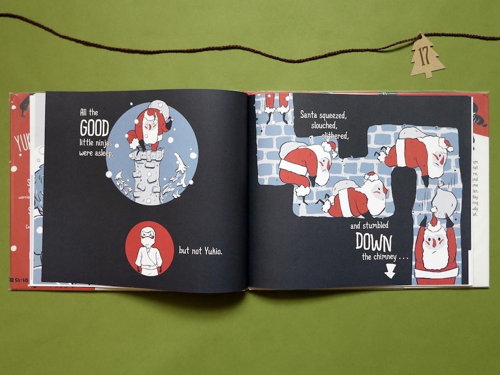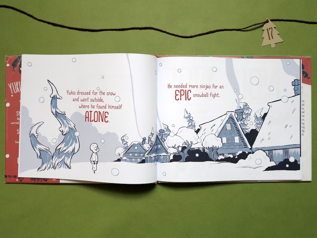 The story is about a boy named Yukio who lives in Ninja Village. Christmas Eve brought the most perfect snow day of the year and Yukio desperately wants to have a huge snowball fight. But none of the other ninjas will join in because they don’t want to be on Santa’s naughty list. Yukio is sad and lonely.