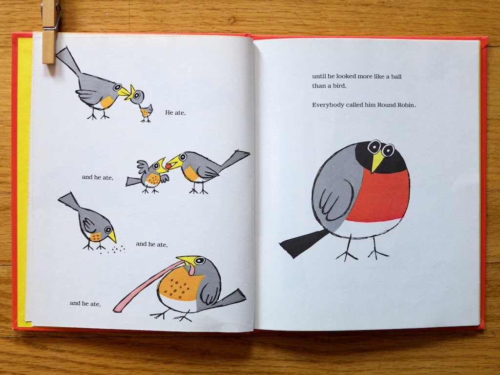 I actually love the odd picture book that doesn’t have a smidgen of moral or point. Jack Kent’s spare illustrations are just right for Round Robin’s tale. Kent had great skill for simple, expressive characters and excellent comedic timing. And to be perfectly honest, I love this ending to the book trio because while I love robins and was initially enthusiastic to see them; spring continues to trek on and I find myself dreading the oncoming heat more and more and feeling the stretch of continual work ahead of me. Then I think of Round Robin and quote: