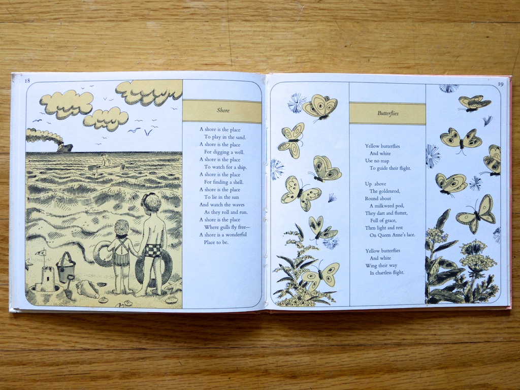 Call it a bit of cheating if you must, but I’m pulling this favorite book of poems with illustrations by a favorite illustrator to share just the summer section. This book is filled with poems about simple things in each season — summer being about long shadows, the seashore, butterflies, camping, and other fun things.