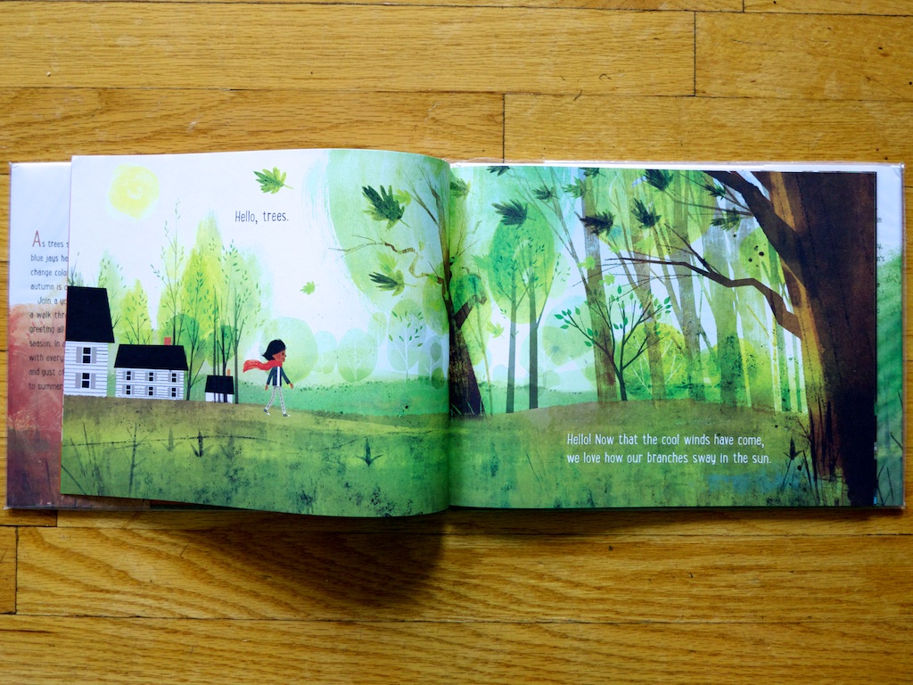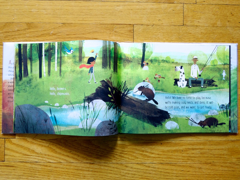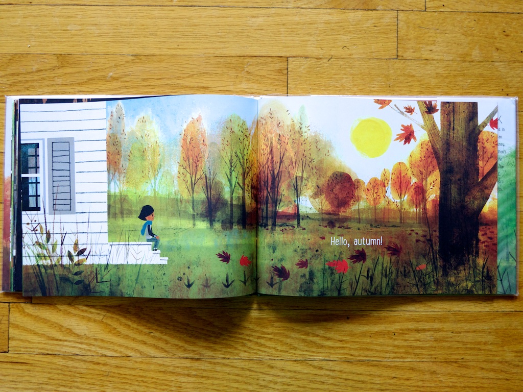I also love that there is one wordless spread between the goodbye to summer and the hello to autumn. It is a perfectly placed pause.