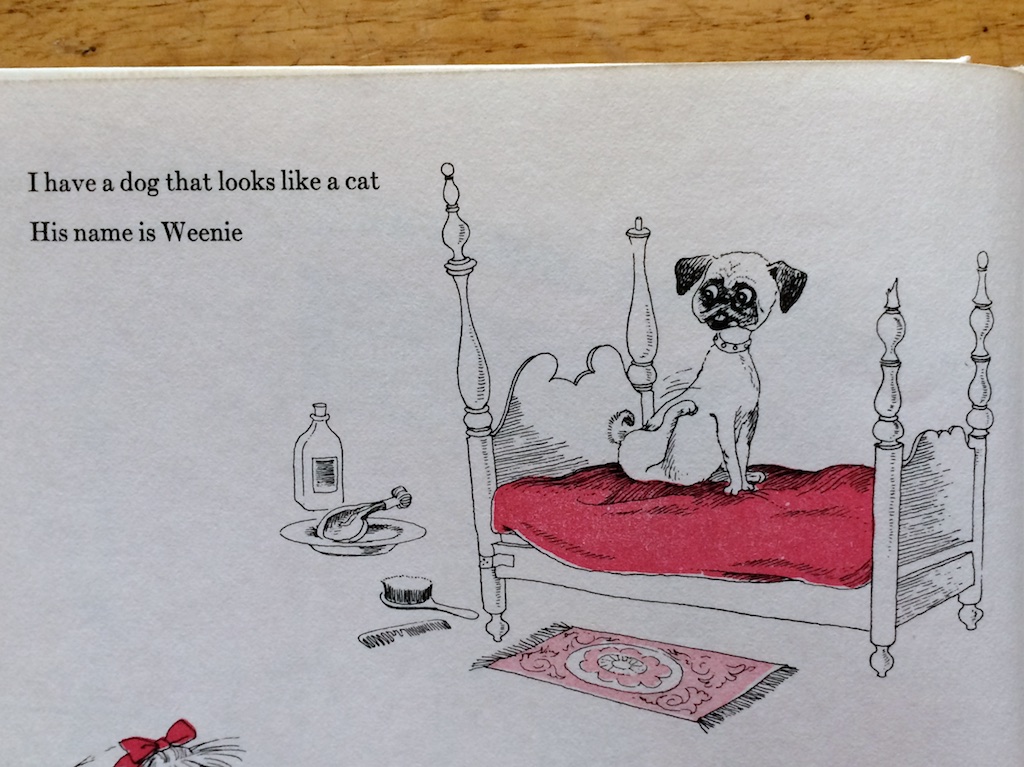 A surprisingly skinny pug, made all the more surprising considering this illustration tells you how spoiled he must be.