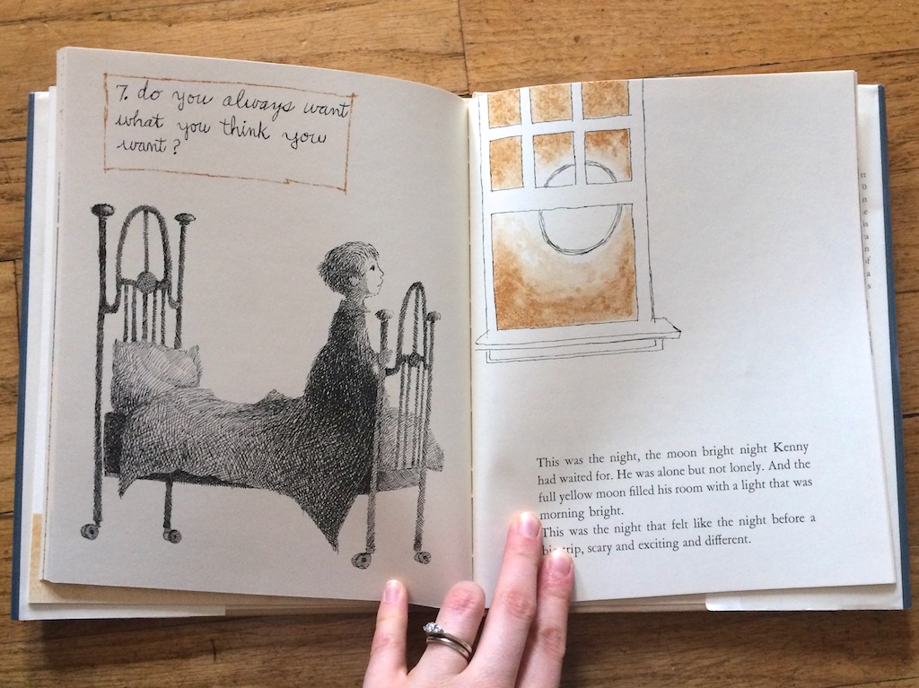 This is one of the first picture books that came to mind when I was thinking about bedrooms, simply because Sendak’s illustrations are so spare and striking. This bedroom is really just a cool bed and a window. It leaves so much space for the imaginative story woven around Kenny’s window. Any other details would get in the way.