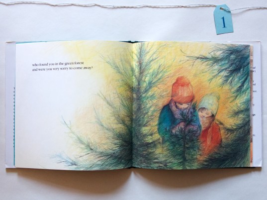 Deborah Kogan Ray has done a delightful job setting cummings’ poem in the city. Her illustrations are soft and not overly detailed. They exude a warm feeling, much like the season of Christmas warrants. Since I discovered this book once we moved to the city, it holds particular joy for me as it quite closely mimics the feelings we experience of walking to a street tree seller, selecting a small tree to fit our apartment, carrying it home, and decorating it. It is a tradition we cherish and this book captures that feeling.