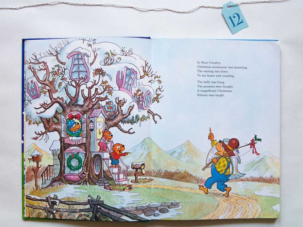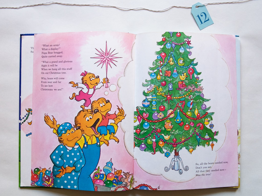 Day 12 brings a lovely tale of a Christmas tree for a family of beloved bears. I don’t know about your families, but around here there is a lot of love for the (vintage) Berenstain Bears. Most of our books are from the 70s and 80s and were my husbands. Our girls have taken a strong liking to them all on their own. I’m not sure if it is the size of the books, the familiarity of the characters, or the simplicity of the stories that has them so captivated. I was excited to track down this book last Christmas. It is a special holiday book based on the NBC-TV Christmas show (which we actually haven’t seen). Warm your heart and your spirit this season with The Berenstain Bears’ Christmas Tree by Stan and Jan Berenstain, 1980.