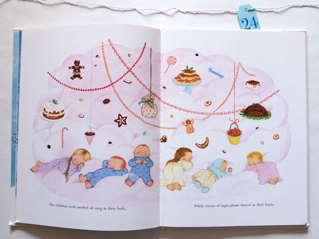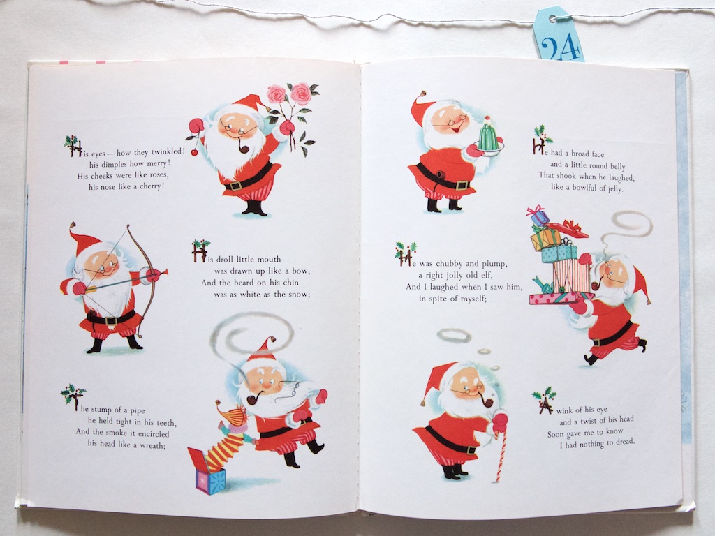 1. This is my favorite version of “The Night Before Christmas”, and I had a copy as a child. My favorite page was also the interior of the house, and I too, loved every detail. I now have several copies, and have shared with my children, and hopefully soon, grandchildren. Thank you for the memories.