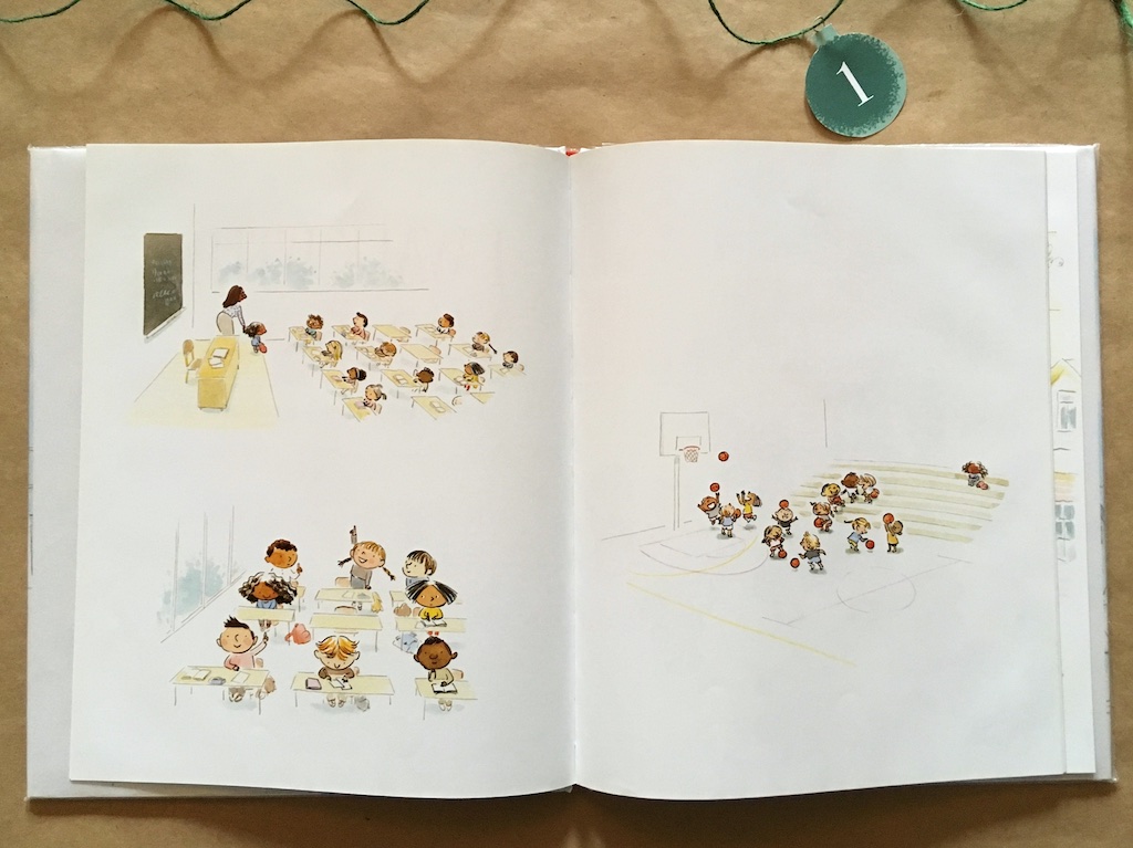 This book is an excellent gift for anyone and everyone. A while ago I heard a great talk about how important it is to not label anyone a “bully” but instead to talk about the act and effect of bullying behavior. Everyone is capable of acting in a bullying manner. This is exactly what this book does. While we see a child acting meanly toward Vanessa, we don’t focus in on him. In the start of the story, no one had reached out to Vanessa. She was almost invisible in the way the others treated her. While the boy was wrong in his big act, I love that the focus is more on what kindness looks like. The story is about Vanessa and everyone else watching who help change the story. One girl starts the change and begins a domino effect of bringing Vanessa into the group. Kindness begins with a simple act and blooms into something wonderful.