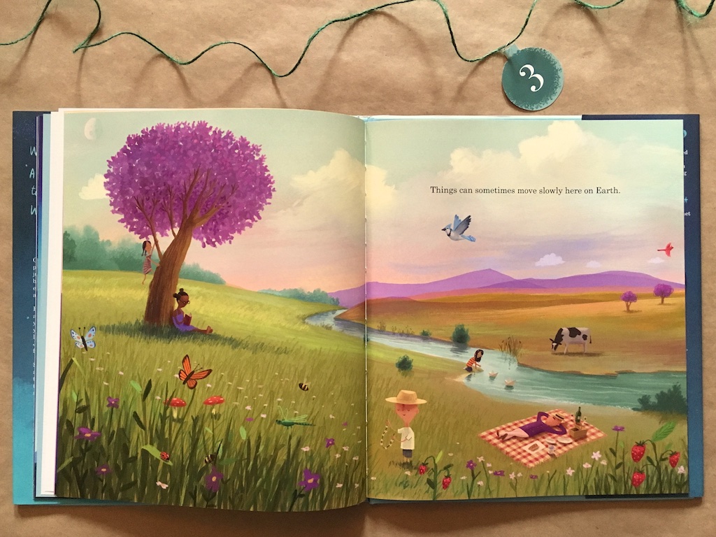 I have long been an admirer of Jeffers’ work. He is a wonderfully successful mixture of fine artist and storyteller, witty and thought-provoking, entertaining and heart-warming. This book is sweet, yet not overly simple. It is easily relatable, deeply profound, and clever. Jeffers poured so much of his heart into this book, that it feels personal. The arc of the story is beautifully executed. From introducing the grand mystery of the huge universe, all the way to ending with the vast array of knowledge and love of all the people living on earth. I’m always fascinated by Jeffers’ artistic style in books as it varies a lot from his incredible fine art paintings. This book does a lot more of almost combining those two different styles. It is still wildly funny and his book style, but the majority of background and landscape paintings edge closer to his painting style in their depth, precision and beauty.