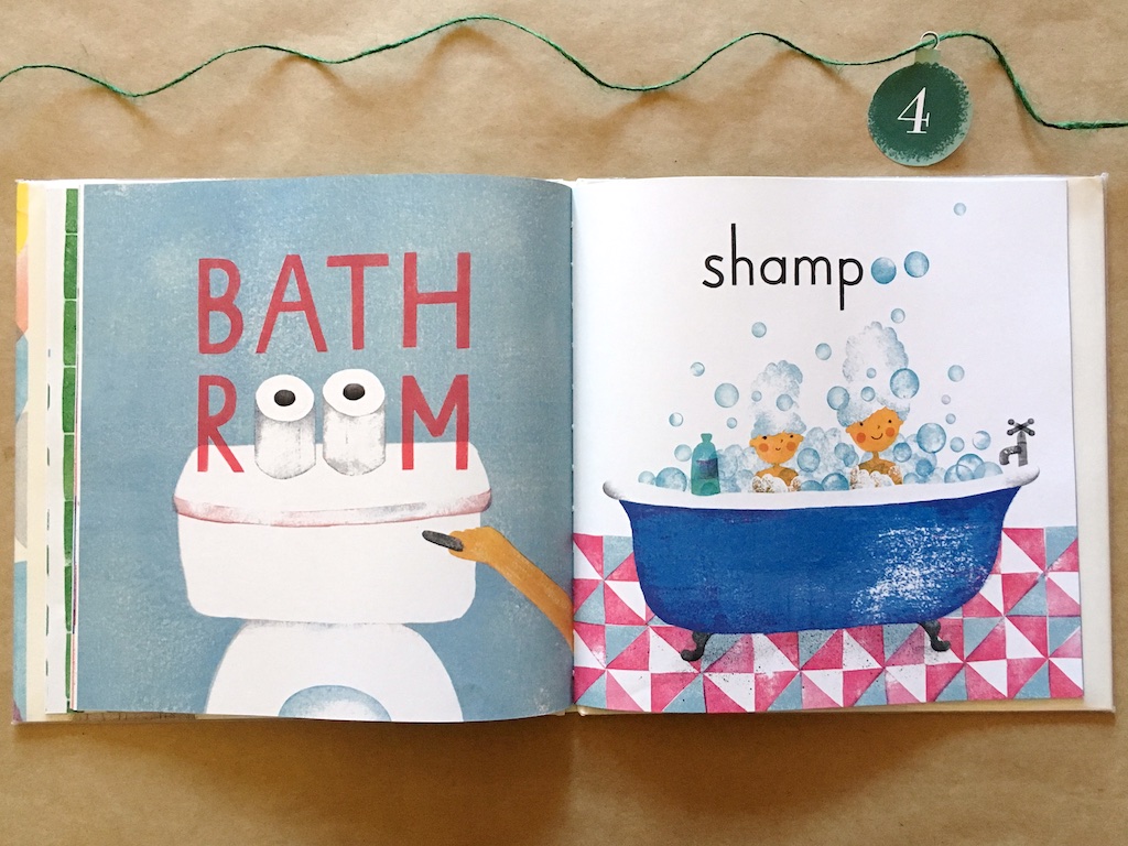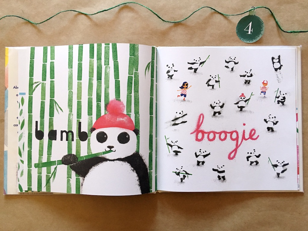 My younger daughter loves pandas, so this spread basically made her week. And my older daughter is a new reader, confident and ecstatic to read anything. She loved this book. The words are easy for her to figure out (for the most part) and after the second reading, she was definitely following the concept. Who knew there are so many great, descriptive words that have the “oo” letters? And you can tell a story with them! I just love how the whole book is put together! The pages are so fun and the story moves quickly and keeps you guessing.
