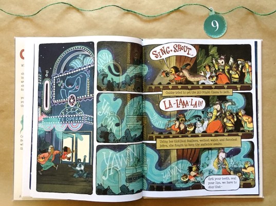 One of my favorite things about this book is the art. LeUyen Pham is a favorite illustrator of ours. I love all of her work and my girls are particularly obsessed with her Princess in Black book series with author Shannon Hale. She is incredibly talented and has such a fun, beautiful, and clever style. I love the comic format of the sequences in this book. There is so much packed in and her style is SO detailed. She builds incredible worlds in her art.