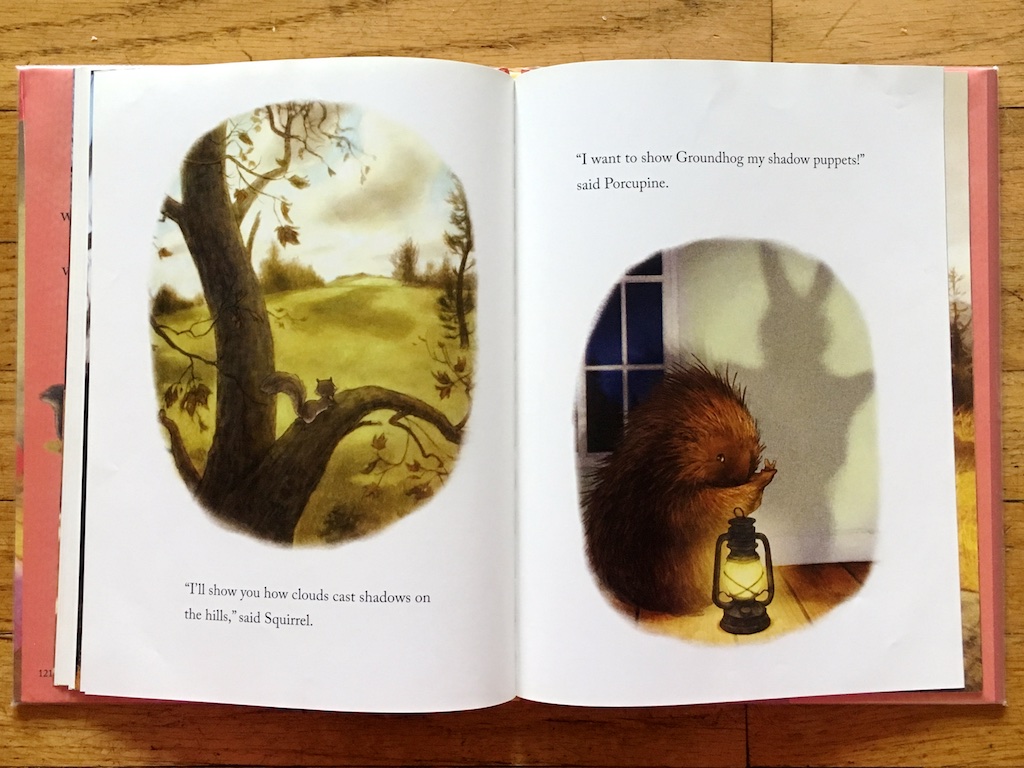 One of my favorite things about Denise’s illustrations is his lighting, an important aspect of this storyline with shadows. The lighting helps sculpt the scenes and look animated, yet almost real! From Moose’s tall and tiny home, to Groundhog’s cozy hole, to the forest landscape; all these places are fantastically composed and inviting.