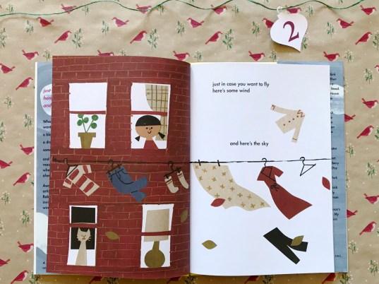 This is just what the title says: just in case you want to fly. It is a beautifully poetic gift of practical and reasonable things you might need to fly, or when you are flying or where you are flying. It is a gift of things like wind and sky, plates and snacks, rocks and coins, songs and a joke, and most importantly, gifts for coming home.