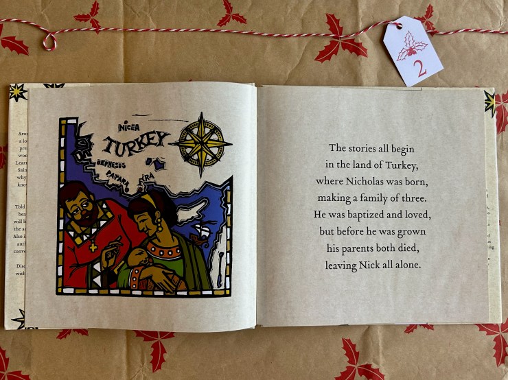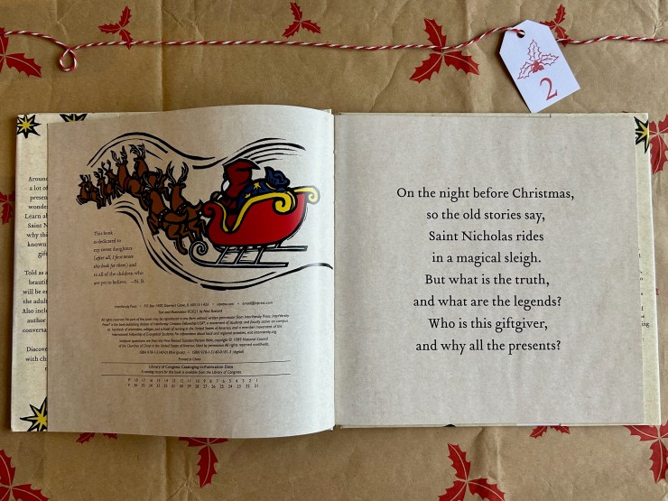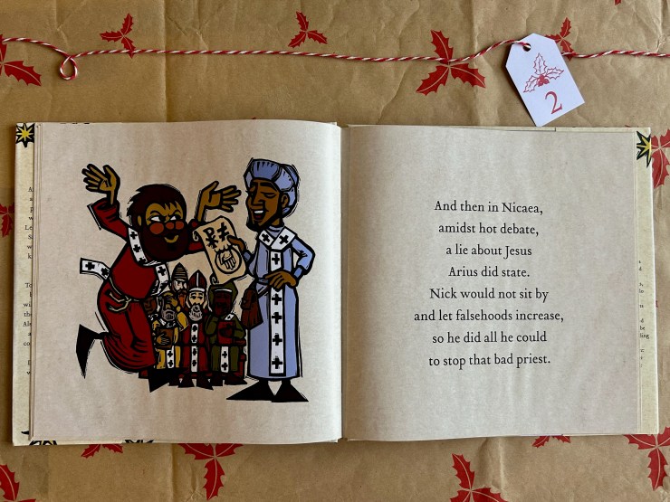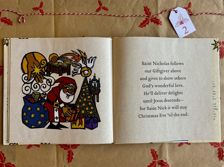 Our second book in this 12 Days of Children’s Christmas Books is perfect for this Saint Nicholas Day! A fun look at the man in red himself: Saint Nicholas the Giftgiver by Ned Bustard, 2021.