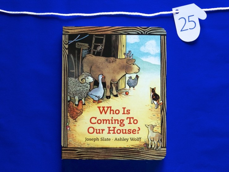 Merry Christmas! We made it to the end of our second year of 25 Days of Christmas Children’s Books. This season went so fast! For our Christmas day book, I have a sweet board book edition of a story from 1988. A barnyard prepares for a guest with small animal tasks to tidy and clean, all prodded by a little mouse who keeps insisting that someone special is coming. This is Who Is Coming To Our House? by Joseph Slate, illustrations by Ashley Wolff.