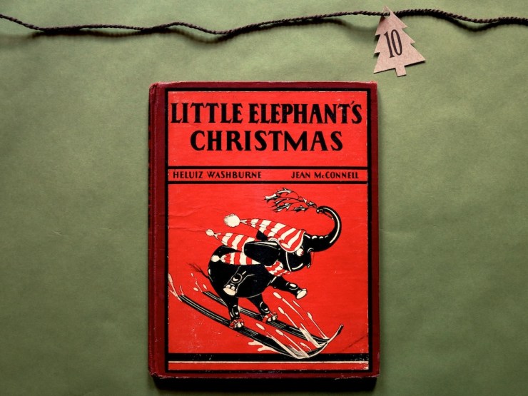 December 10th already. This month is flying by so fast, and Christmas will be here so soon! I found this book just a couple months ago and though it is very dated, I dearly love it. The long narrative, the limited color palette, the darling elephant characters – all of it combines into a surprisingly captivating and endearing story about an elephant family’s celebration of Christmas. Take a look at Little Elephant’s Christmas by Heluiz Washburne*, illustrated by Jean McConnell*, 1938.