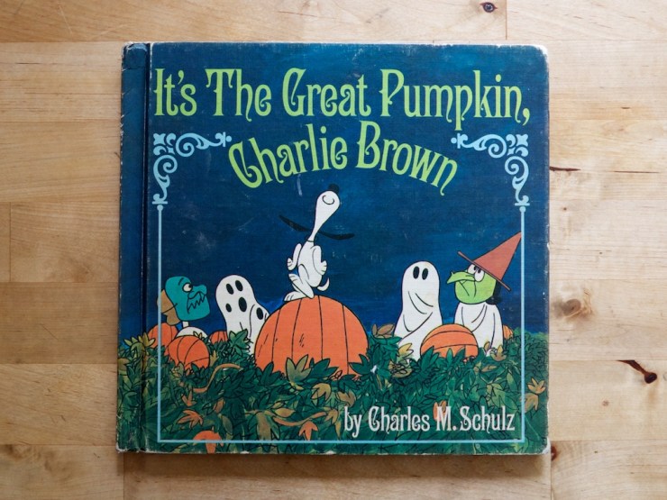 Happy Halloween! I have been wanting to post some fun books all week, and had a few new ones lined up but every time I sat down to write about them, I was stuck. I could not get excited about the reviews and I am not sure why. So I was going to do the lame thing and skip today altogether. And then I spied this book on the shelf and I was once again excited to post. Come have a great vintage Halloween moment with me and look at a gem of a book about a timeless character. Here is It’s the Great Pumpkin, Charlie Brown by Charles M. Schultz, 1967.