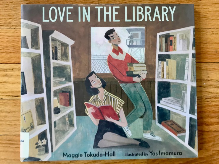 Apparently on theme with both of last week’s books which also relate to something Japanese, today’s book is a love story. It is also a mostly true story about a man and a woman who met, married, and held hope while imprisoned in a Japanese American incarceration camp during World War II. An absolutely beautiful story of finding gifts and miracles in an unjust situation, take a look at Love in the Library by Maggie Tokuda-Hall, illustrated by Yas Imamura, 2022.
