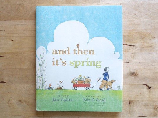 It is officially the first day of spring and although many North American areas are being threatened by yet another forecast of snow, signs of spring are popping up everywhere. The beautiful (but stinky!) Bradford Pear trees are almost at full-bloom on my street and it is almost impossible to be anywhere near the outdoors and not hear the hopeful chirping of the birds in the trees. My featured book for today is most likely being celebrated on many lists as it is very new and still on many bookstore shelves, but I swoon over this book and feel the need to add my own praise into the masses. So here we have a book all about that long, somewhat dreadful, but oh so beautiful wait for the world to turn from brown to green. Here is And Then It’s Spring by Julie Fogliano, illustrated by Erin E. Stead, 2012.