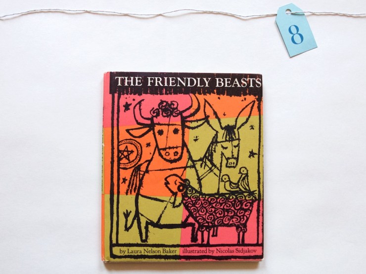 Day 8 is a sweet book adapted from an old English carol. It is a story about the first Christmas as the animals await Mary and Joseph and their newborn baby. It is a unique version of the carol, with an expanded story and vibrant, unusual colors. Check out The Friendly Beasts by Laura Nelson Baker, illustrated by Nicolas Sidjakov, 1957.
