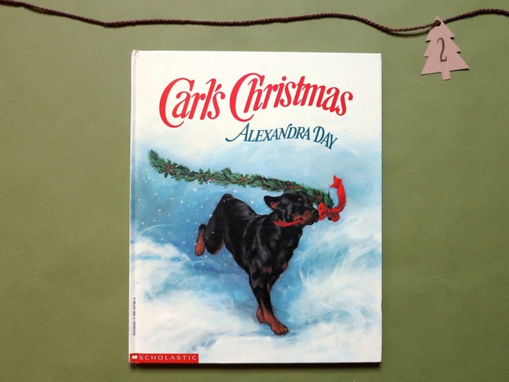 For the second book in our 25 Days of Picture Books 2015, I am making this post do double duty and combining a Christmas book with Wordless Wednesday. As such, this post will be a bit longer than my usual Christmas countdown posts, but it also includes an interview with the author herself! Let’s jump in. Here is Carl’s Christmas by Alexandra Day, 1990.