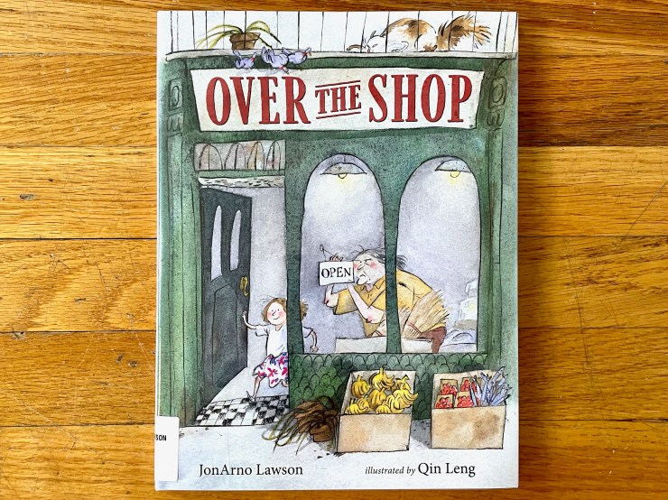 Coming this week with a Wednesday post which seemed the perfect time to resurrect a favorite theme: Wordless Wednesday! If you’re new here, don’t be confused or perhaps get your hopes up – it’s not a wordless post from me. Ha! No, in these posts I celebrate a mysterious genre of picture books: the wordless book. Once a painful headache for me, now I search and celebrate the beautiful ones I can find. If wordless books tend to make you grimace – start with this post with tips for how to read them. And then join me today in drooling over this simple, yet beautiful story about a child and grandparent looking for tenants for their dreadfully neglected rental apartment and finding community in surprising ways. Here is Over the Shop by JonArno Lawson, illustrations by Qin Leng, 2021.
